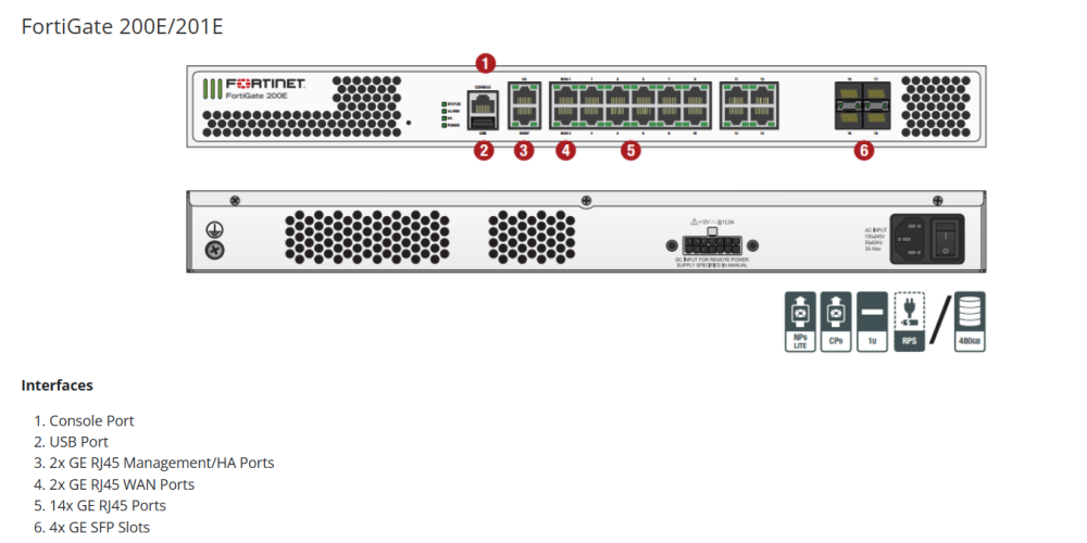 Fortinet FG-201E – сучасний міжмережевий екран наступного покоління (NGFW), призначений для захисту корпоративних мереж та дата-центрів від складних загроз. Пристрій обладнаний 18 портами GE RJ45, 4 слотами GE SFP, вбудованим SSD 480 GB та підтримує високу пропускну здатність: IPS 2.2 Gbps, NGFW 1.8 Gbps та Threat Protection 1.2 Gbps. FG-201E забезпечує підтримку до 2 мільйонів одночасних сесій TCP, 10 000 IPsec VPN тунелів, 300 користувачів SSL-VPN та можливості High Availability (Active/Active, Active/Passive). Крім того, пристрій підтримує FortiAP, FortiTokens, Application Control, CAPWAP та SSL Inspection. Ідеально підходить для середніх та великих корпоративних мереж, забезпечуючи надійний захист при високій продуктивності.