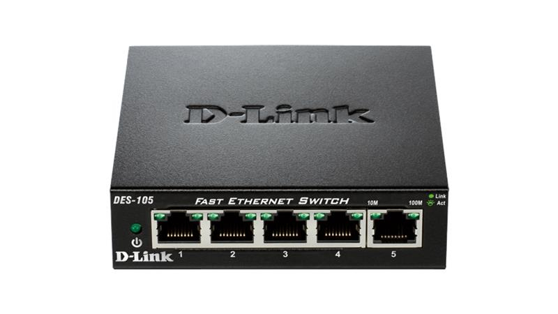 Комутатор D-Link DES-105/E 5xFE, Некерований, Метал