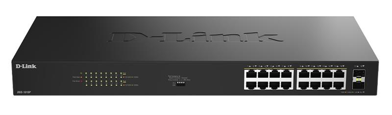 Коммутатор D-Link DGS-1018P 16x1GE PoE+, 240Вт, 30Вт/порт, Неуправляемый