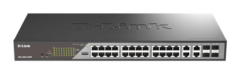 Коммутатор D-Link DSS-200G-28MP 24xGE PoE, 4xSFP/GE, 370Вт, Неуправляемый